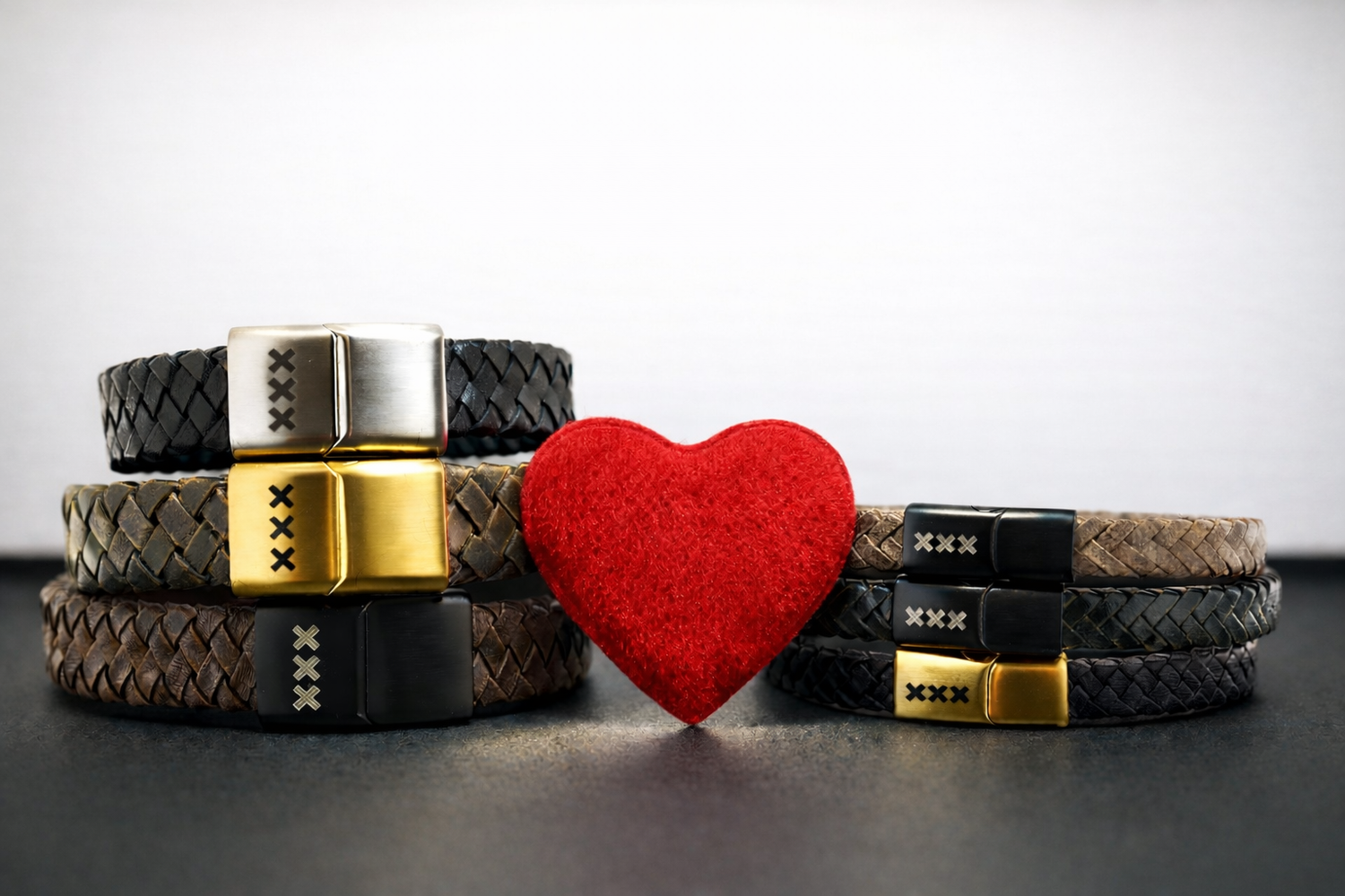 Ontdek onze stijlvolle, handgemaakte leren armbanden van hoogwaardig leer, gegraveerd met het iconische XXX kruisjes van Amsterdam. Perfect voor de hele familie – een tijdloos sieraad dat elke outfit compleet maakt.